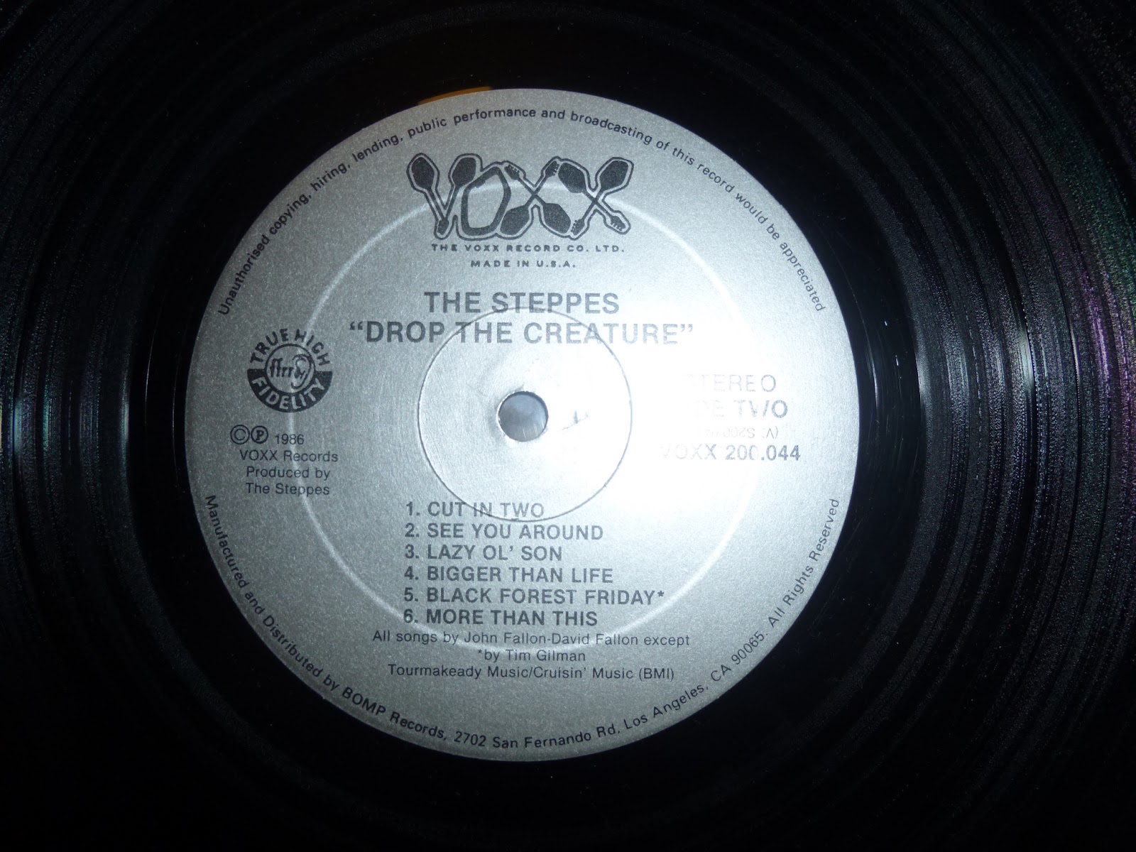 “Make us bleed” è un brano con molta chitarra elettrica e una melodia quasi power pop, “Cut us in two”, è forse il brano più debole del lp, ma la sua melodia caratterizzata dal rullante quasi stile banda è comunque molto coinvolgente. Puro pop psychedelico per “See you Around”, a me personalmente ricorda un incrocio tra i primi Jefferson , i Moby Grape ed i grandissimi Kak ,considerate che nel 1987 non era cosi facile trovare del materiale su questa ultima band. “Lazy ol’ son” è un altro di quei brani capolavoro del disco, un crogiolo di stili amalgamati alla perfezione in 4 minuti e mezzo; il giro di basso iniziale stile “White Rabbit” dei Jefferson, la melodia con voce baritonale, e le chitarre twangy e riverberate per tutto il brano ,in aggiunta effetti che arricchiscono il pezzo proprio come nell’idea originaria della psychedelia. Ancora un brano meraviglioso con “ Bigger than life”, (quante perle in solo disco!!) gioellino di pop e sperimentazione psych, a mio parere, è un omaggio ai Beatles di Abbey road. Un video molto acido ,ufficiale, è presente su You Tube nel canale Steppestv gestito da John Fallon. “Black forest Friday “ è pura improvvisazione sperimentale utilizzando effetti e un carillion in stile Tea Company, quasi una citazione. Il disco d’esordio è, una perfetta fotografia del sixties sound nel senso completo (cioè non solo garage, pop o psych) nel 1987. Dalle session del primo lavoro rimangono fuori abbastanza inediti, che compariranno in diverse fanzine soprattutto europee, dove gli Steppes grazie a “Drop of the creature” sono riusciti a ricrearsi un seguito notevole (Italia, Grecia soprattutto, Spagna, Germania). Tra le partecipazioni maggiori ricordiamo “All you wanted” allegata all’italianissima (del grande Claudio Sorge) fanzine “Lost Trails” del 1988 e “History hates no man” del magazine Freakbeat nel 1987. Gli Steppes che nel frattempo sostituiscono il batterista con Erik Denning , iniziano nel 1987 a lavorare sul secondo Lp, che sarà molto più ricercato del precedente, il lavoro è molto più ambizioso ,visto la quantità di sovra incisioni, effetti e strumenti presenti come fiati, cori organo e molto altro che richiedono un lungo lavoro in studio.Il disco vedrà la luce nel febbraio del 1988 e si intitolerà “Stewdio” (to be continued)... The Steppes -Somebody Waits (sample)