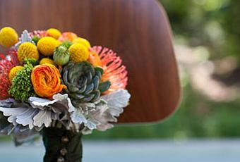 Una palette colori che comprende il verde oliva, l'arancio brillante, il bianco e il nero crea infinite combinazioni e fantasie riprese non solo negli allestimenti floreali, ma soprattutto negli elementi di decoro della stationery che, per l'occasione, si è fatta texture nel retro degli inviti, nel rivestimento delle buste, nelle bandierine per i cocktail e nei wrapper per i sigari.