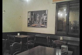 composti da un paio di sale con tavoli in legno. Dietro al banco bar, una