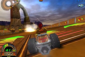 Corsa kart estrema in 3D, prendi il controllo completo del veicolo! Fisica, velocità, scontri, armi estreme e altro ancora! Entra nelle profondità del mondo del vulcano Lonlo come mai prima d'ora. Goditi la vista quando ti imponi sui circuiti di 15 piste complete divertenti. Tieniti forte poiché puoi incontrare salti che sfidano la morte, spirali che girano a cavatappi, velocità con i cuscinetti di spints e andare a tutta velocità attraverso cicli che sfidano la forza di gravità. © © 2011 Arb Studios LLC