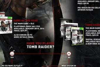 Veniamo così a sapere che, oltre alla Definitive Edition per PlayStation 4 e Xbox One, che rappresenterà un vero e proprio adattamento evoluto del gioco per le console next gen, con grafica aggiornata, è prevista anche una Game of the Year Edition per Tomb Raider su PlayStation 3 e Xbox 360 (e successivamente anche su PC), contenente il gioco originale insieme ai DLC usciti successivamente, disponibile dal 28 gennaio 2014 in nord America al prezzo di 29,99 dollari.