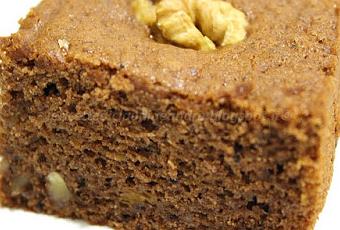 A questo punto amalgamare intercalando a cucchiaiate la farina ed il lievito setacciati in precedenza con gli albumi montati a neve, in modo delicato per non farli smontare e 30 g di noci tritate. Versare il composto in uno stampo ben imburrato, io in uno stampo 30 x 22 cm, distribuire sopra le altri 20 g di noci spezzettate a mano ed infornare a 180 ° per circa 60 minuti, facendo la prova stecchino.