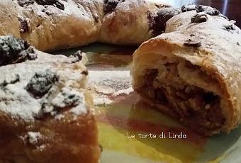 Avvolgete la pasta formando un rotolo.Adagiate il rotolo in una teglia ricoperta di carta forno e formate una ciambella.