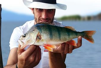 <C’è!> esclamo. E tu non ci credi che al secondo lancio la canna sia piegata… In breve un bel persico è tra le mie mani. No mamma, no gentili ospiti, non è né magia né semplice fortuna… è che il persico reale adora un recupero irregolare, con brusche accelerazioni e stop, è che la stagione è giusta, è che quelli più grossi spesso stanno un po’ più a fondo e preferiscono esche un po’ più grandi, è che io so pescare decentemente e appartengo al gruppo di pesca migliore dell’universo, gli eletti dell’Anonima Cucchiaino, benedetti dagli dei della pesca che li illuminano… mentre voi non avete un’idea di come i pesci possano uscire dall’acqua se non al banco frigo del supermercato. Sì, lo rilascio dopo la foto. Se è buono da mangiare? Tra i migliori d’acqua dolce, lo terrei anche, ma in rete ne ho visti troppi massacrati e non ce la faccio ad unirmi al coro.