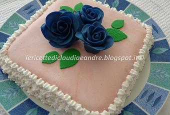 Vi ricordate le roselline blu fatte con la pasta da zucchero Kelmy che ho postato da poco? Eccole qua in una dolce e gustosa torta. E' ideale per qualunque occasione e devo dire che fa il suo figurone!!