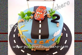 I bambini lo adorano e così ecco qui un altro specialissimo Saetta solo per il piccolo Riccardo.La torta è un pan di spagna con crema diplomatica e la bagna al latte e nesquik ed è ricoperta in pasta di zucchero. Tutte le decorazioni sono interamente realizzate in pasta di zucchero, anche il vassoio e Saetta.