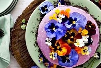 - Rifinire aggiungendo biscotti Oreo schiacciati e viole del pensiero commestibili.
