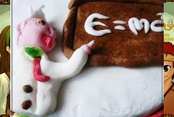 Sulla torta ho tentato di raffigurare la simpatia e la genialità di Einstein, ho dimenticato i baffi e non la lingua screanzata, ho riportato la sua formula ideale mentre a te, mio amore, auguro di trovare la formula per la serenità!