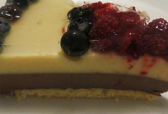 La torta che vi propongo oggi è caratterizzata da una base di morbido biscotto alle mandorle, da uno strato di crema pasticciera e da uno di crema al cioccolato, entrambe senza latticini. Completano la preparazione lamponi e mirtilli freschi a guarnire il dolce e a fornire una bella nota di frutta alla preparazione. Trovate questa ricetta nella sezione la cucina intollerante, dove potete trovare tante ricette dolci e salate per le varie intolleranze come la torta al cioccolato, cannella e frutta d’estate.