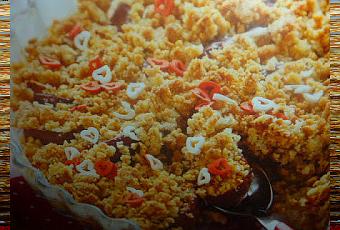 disponete sulle mele le briciole di impasto e infornate a forno già caldo a 180° fino a doratura levate guarnite con confettini colorati e servite accompagnando con panna montata