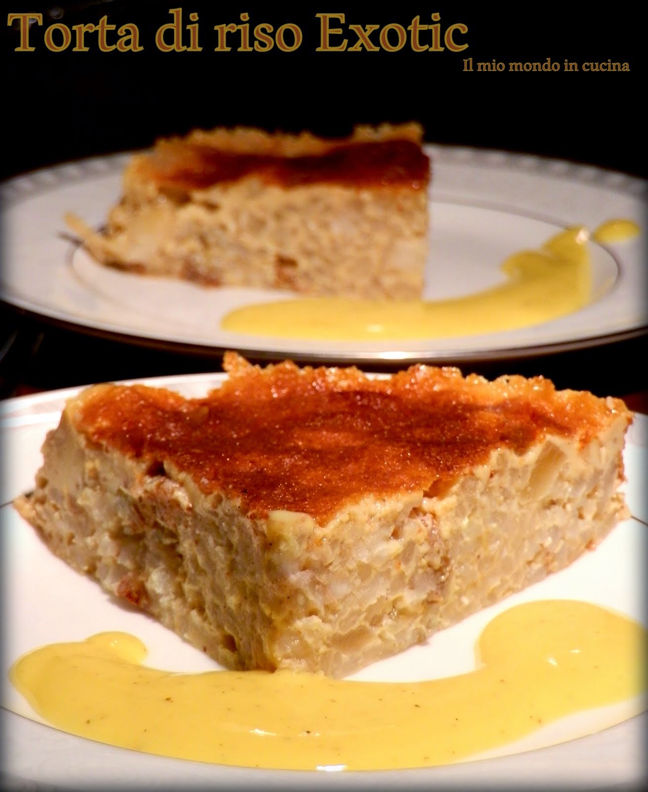 Ingredienti per uno stampo di rotondo di 18 cm. di diametro : 80 gr. riso (arborio o vialone nano) – ½ l. latte - 80 gr. zucchero semolato – 60 gr. mix esotico tagliato a dadini, da ammollare la sera precedente con poco Cointreau - 1 uovo magnum – 2 cucchiai di Cointreau - 1 pizzico di sale – spezie (un pizzico di cannella macinata, 2 chiodi di garofano pestati, un pizzico di zenzero macinato, un pizzico di cardamomo in polvere e un pizzico di vaniglia in polvere)