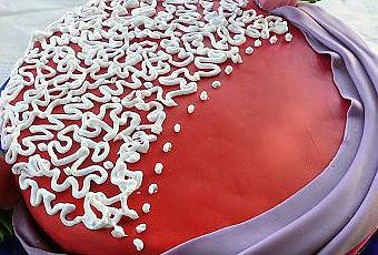 Anche qui avevo preso un preparato non avendola mai fatta. Il preparato è ottimo, sia come densità che come consistenza, e ne sono rimasta molto soddisfatta. Mi sono preparata un cono di carta forno, piccino, per poter fare le decorazioni e ho iniziato a decorare. Io volevo che si vedesse il rosso e che una parte assomigliasse a un pizzo, spero di esserci riuscita!E' stata davvero apprezzata, e soprattutto è stata sbranata. Ho finalmente passato il Rubicone e fatto una torta tipo "cake Boss", anche se penso che lui non debba proprio temere niente da me!!! Però è stata una soddisfazione!