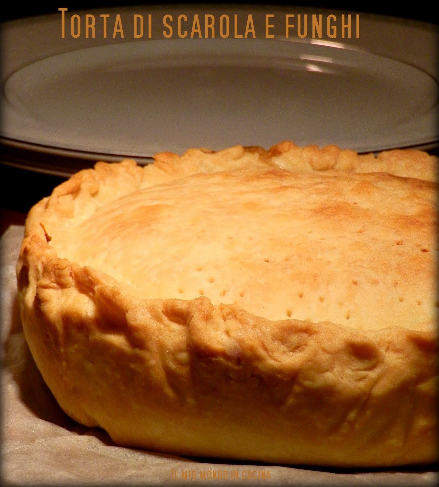 Ingredienti per una torta media (stampo a cerniera di 18 cm. di diametro) : 250 gr. scarola - 175 gr. farina 00 - 100 gr. burro – 50 gr. panna fresca - 30 gr. parmigiano reggiano grattugiato – 45 gr. emmental - 20 gr. porcini secchi – 1 uovo – 1 tuorlo – ½ scalogno – 4 gherigli di noce – un pizzico di origano secco – 1 rametto di timo - sale e pepe - olio e.v.o.