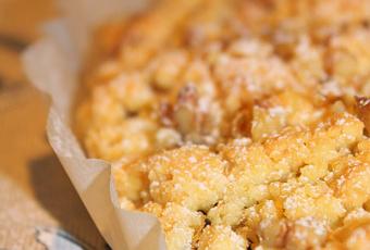 In una terrina unire le farine, lo zucchero e il sale e omogeneizzare con un cucchiaio. Unire il burro fuso e iniziare a impastare con le mani, unire poi l'uovo e continuare fino ad ottenere delle grosse briciole. Ricoprire la tortiera con carta forno e creare la base con 3/4 delle briciole. Preparare il ripieno tritando il cioccolato grossolanamente e unirlo alla ricotta (se gradite potete unire dello zucchero, a me piace così). Stendere il composto di ricotta sulla base e ricoprire con le restanti briciole e per ultimo le noci tritate. Cuocere in forno già caldo a 180°C per circa 35 - 40 minuti. I primi dieci minuti di cottura io consiglio di farli mettendo la tortiera nella parte bassa del forno.