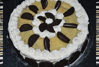 Montate la panna e mettetela in una saccapoche, decorate a piacere con panna oreo interi e a granella.