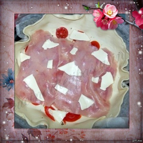 Stendere in una teglia un rotolo di pasta sfoglia foderata di carta da forno. Adagiare sul fondo i pomodorini con un filo d'olio e l'origano.