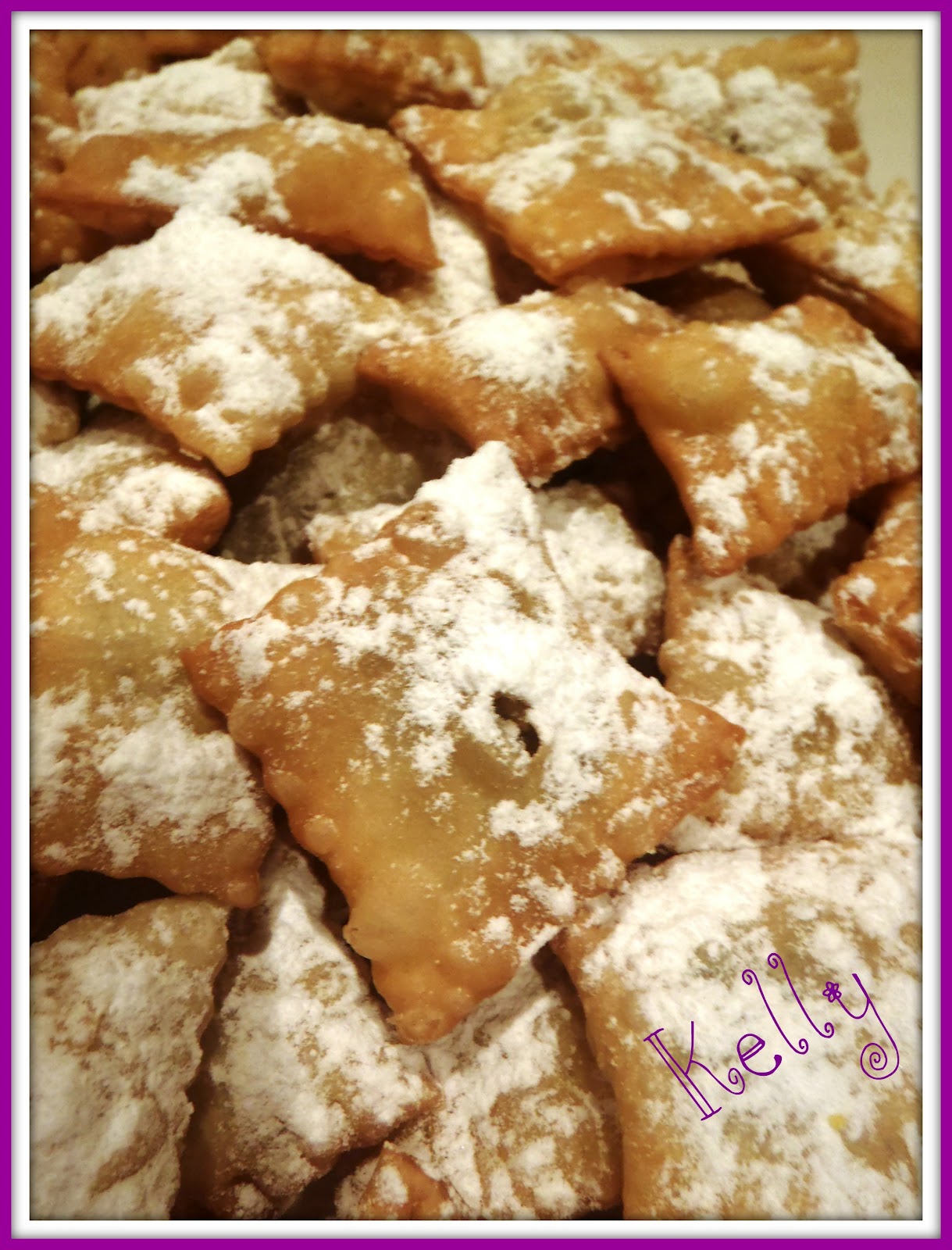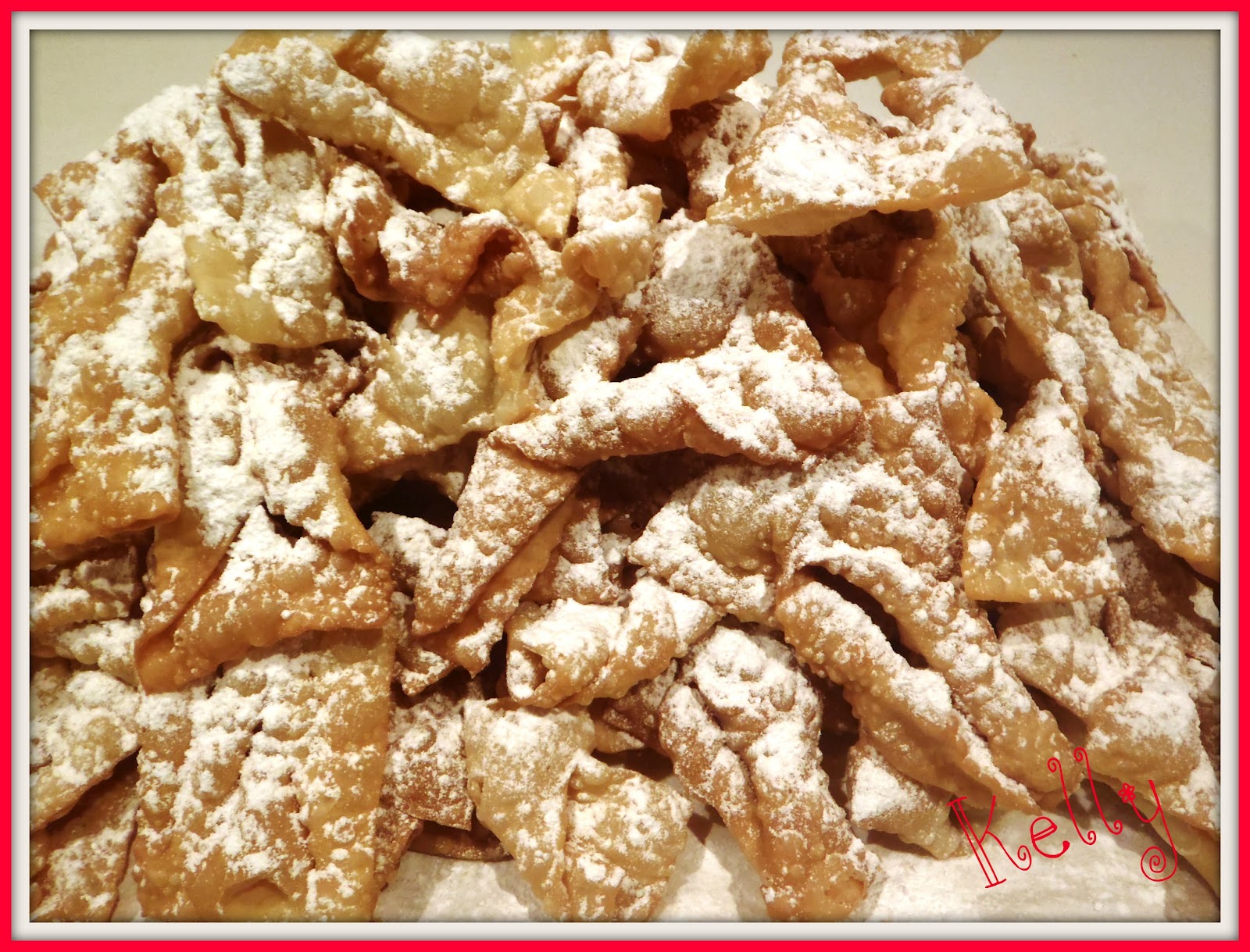 - Alle chiacchiere potete dare la forma che volete , potete fare i nodini , i rettangoli, i tagliolini ,grosse o piccole .....quello che aggrada di più il vostro gusto.