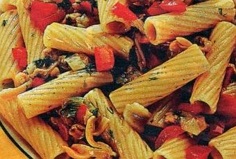 La pasta dell'estate è piena di colori e di sapori. Assolutamente da provare questo piatto di tortiglioni con peperoni. Una porzione fornisce circa 391 kcal.