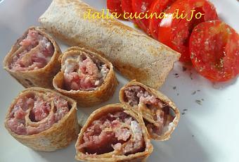 Preparate queste tortillas e dopo averle scaldate ricavatene rocchetti che rimarranno morbidi.