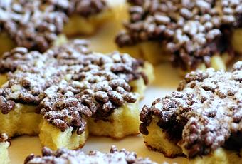 Ingredienti:3uova, 3hg di zucchero, 3hg di farina,un bicchiere di latte tiepido,1/2 bicchiere di oliouna bustina di lievito vanigliato scorza grattugiata di un limoneCrema di nocciole riso soffiato al cioccolato e zucchero a velo.