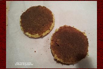 Con l’aiuto di un coppapasta ritagliate due sagome rotonde di pan di spagna. Quello avanzato potete tranquillamente utilizzarlo per altri dolci o eventualmente congelarlo per l’occorrenza.