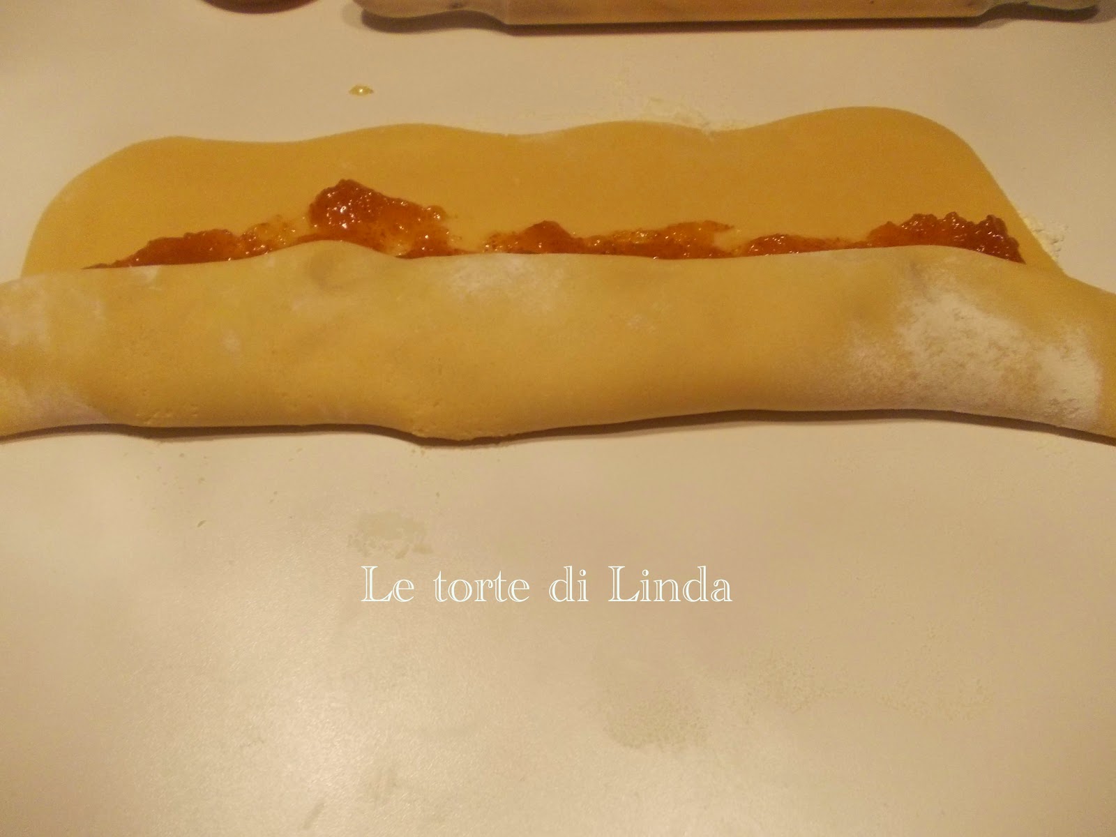 Arrotolate la pasta stando attenti a sigillare bene le estremità per evitare che fuoriesca la marmellata e disponetela su una placca da forno ricoperta di carta forno.