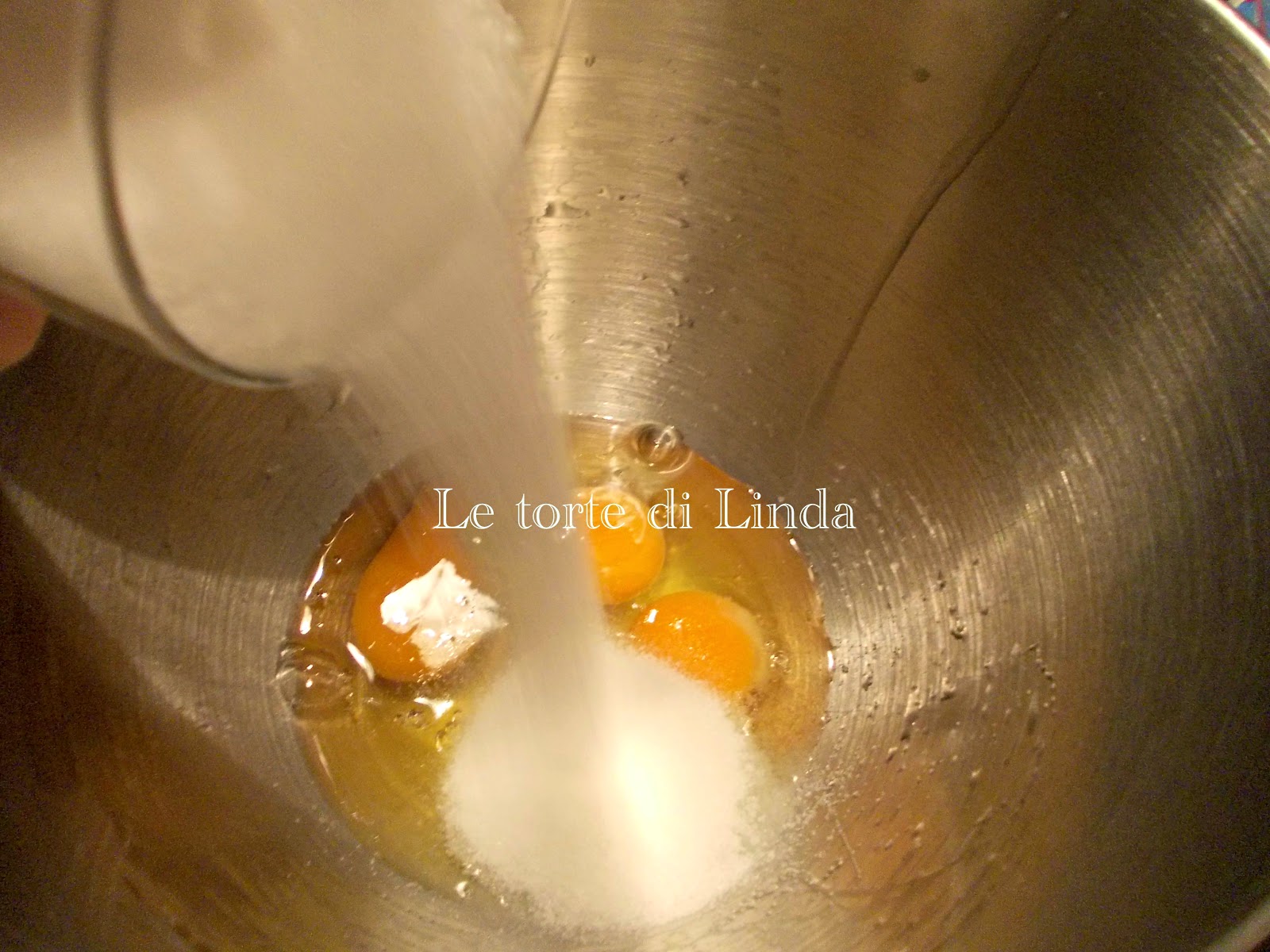 Inserite in una ciotola le uova e lo zucchero e mescolate.