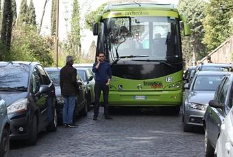 Come tutti sappiamo (e per chi non lo sapesse vi sono dei chiari segnali di divieto di accesso posti su tutti gli accessi all'Appia Antica) questa strada la domenica è chiusa al traffico. Dovrebbe essere una lunga isola pedonale. Quando ne ho la possibilità la percorro in bici fino al centro, e come me tantissimi romani e turisti stranieri che vanno a piedi o in bicicletta. Dalle foto che vi allego potete vedere quante auto (parcheggiate e in transito...) vi erano questa mattina all'altezza delle catacombe di san callisto. ho fatto le foto proprio per inviarvele, dato che seguo con interesse il lavoro che svolgete quotidianamente. come si può vedere le auto in sosta (vietata... a prescindere dal fatto che la via fosse chiusa al traffico) hanno bloccato un bus pubblico (l'"archeobus"), tanto che l'autista ha dovuto chiamare i vigili. per passare con la bicicletta ho dovuto portarla a mano (tenendola più alta delle auto) e ho aiutato un paio di turisti con le loro bici. Purtroppo i miei genitori mi hanno dato una buona educazione (al contrario di quelli delle persone che avevano parcheggiato lì) quindi ho avuto cura di non sfiorare le auto in sosta... Dietro al bus bloccato vi era una fila di simpatici automobilisti rimasti bloccati. E, purtroppo per loro, un bel gruppetto di turisti alla fermata del bus (in piedi e sotto al sole) ad aspettare quello stesso bus rimasto bloccato... Ho segnalato la cosa ai vigili urbani che fermano le auto a porta san sebastiano (uno fisso in macchina e uno che scende solo quando qualcuno cerca di prendere via appia antica) e mi hanno detto "sì 'o so, ma se nun ce mettono artri viggili a l'artre vie è normale che a ggente passa"... non so come sia finita la storia... probabilmente avranno mandato una pattuglia sul posto che se la sarà presa con l'autista dell'archeobus ("ma che nun lo vedi, ce passi...")... Alessandro B.