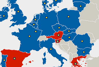 Interessante timeline interattiva proposta dal Guardian sul colore dei governi europei: quella qui sotto è la fotografia della situazione attuale,con il blu che indica governi di destra o conservatori e il rosso che indica governi di sinistra o riformisti. La stella indica l'appartenenza alla UE. Partendo dal 1972 fino ai giorni nostri.Cliccate sull'immagine per accedere alla mappa.