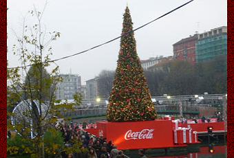 ecco com'è il natale a Milano con il panettone l'albero di Piazza Duomo quest'anno hanno messo alla Darsena una pista di pattinaggio e la slitta di Natale che fa fare un giretto ai bambini sul naviglio