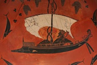 Ma nel 530 a.C. il grande Exekias, in uno dei manufatti più celebri dell’arte greca, la kylix di Dioniso, ci ha lasciato un racconto carico di suggestioni. Un mito antico e una guerra commerciale.
