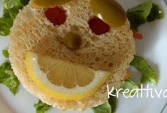 Tramezzino Smile con salmoneIngredientifette pancarrèsalmone affumicatoburro salatolimoneinsalataolive verdiolio d'oliva extraverginesaleHo realizzato con un coppa pasta 2 tondi e con un leva torsoli 2 fori (che serviranno per gli occhietti ) li ho messi su una piastra bella calda, quando si sono grigliati ho spalmato sulle 2 fette del burro ho adagiato sopra le fette di salmone affumicato che avevo messo a marinare per qualche minuto nel limone. Sul fondo del piatto ho messo dell'insalata condita con sale olio e limone, ho completato il tutto decorando con olive verdi e limone, ora non mi resta che mangiarlo e scappare!!!Buon sabato a tutte voi!!!