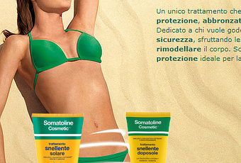 La linea Snellente Solare SOMATOLINE COSMETIC unisce, in un solo prodotto, protezione, abbronzatura e snellimento. Questa linea è costituita da due Snellenti Solari con SPF 6 e con SPF 15 e da uno Snellente Doposole da applicare al rientro a casa, dopo una doccia rigenerante o dopo un rilassante bagno in vasca.