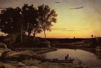 Evening Landscape, The Ferryman Evening Jean-Baptiste-Camille Corot
