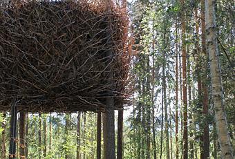 Sorge in altura, su un ripido pendio e offre una splendida vista sulla valle del Lule River. La stanza sull’albero è sospesa dalla pedana e il ponte di accesso è leggermente separato dalla costruzione in modo da farlo apparire più piccolo e per consentire all’architettura una propria espressione individuale.