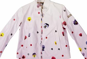 Il brand dedica gran parte della sua collezione SS 2015 ai fiori primaverili, come il tubino bianco a righe verdi con tulipani rossi, perfetto per un aperitivo tra amiche. I Trend Spring/Summer 2015 sono il trench in tessuto impermeabile con cappuccio o il chiodo di pelle entrambi color glicine con stampe di violette africane, lamponi e more.