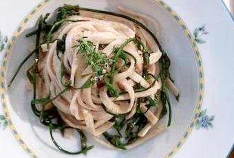 Trenette avvantaggiate con bruscandoli e talli d’aglio.