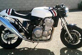 Per questa moto si è ispirato alla vittoriosa Triumph che riusci a vincere per 5 anni il Tourist Trophy dal 1971/75 , almeno nella versione racing , ma il nostro amico è rimasto folgorato dalla versione replica della foto qui di fianco .Molto belli gli scarici Trigun che hanno un sound molto particolare , questi mi fa venire in mente che quando andai in concessionaria per l'acquisto della mia moto quasi 15 anni fà , mi fù offerto una special su base Trident T300 bianca con gli stessi scarichi e da ragazzo poco avveduto rifiutai ...peccato .