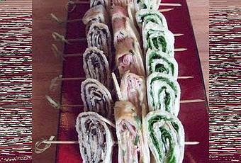 Quindi srotolare pian piano ogni rotolino dalla sua pellicola e infilarli alternando i gusti sugli spiedini di bambu'.Riporre in frigo fino al momento di servire.