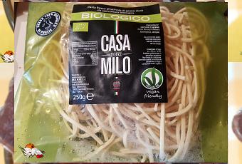 E poi ci sono quelle giornate in famiglia, con tanti bambini intorno, occhioni stupiti e meravigliosi che ti sorridono, mille coccole e chiacchere a cuore aperto con persone che ti conoscono dalla nascita. Ieri è stata una di queste giornate, io e mia cugina, i miei e i suoi pargoli insieme…. una splendida giornata! Torni a casa con il cuore più leggero da problemi e arricchito d’amore e improvvisamente questa gioia porta all’ispirazione in cucina e alla voglia di mettersi ai fornelli per preparare una deliziosa cena per la tua famiglia! Il piatto che vi propongo oggi è nato proprio da questo e visto che i primi sono i preferiti dalla mia ciurma, non potevo che dedicarmi alla creazione di un ottimo piatto di pasta! In casa un formato di pasta nuovo, I Troccoli di Casa Milo, grandi spaghettoni quadrati di pasta fresca bio, perfetti per raccogliere un buon sugo.