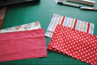Prendete due pezzi di tessuto di cotone con una misura di circa 25x15 cm(la misura è determinata dalla misura del busta che avete a disposizione)