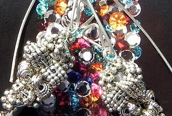 Originali orecchini con gancio lungo creato a mano e pendente a grappolo formato da spirale di filo e grande varietà di piccoli distanziatori piatti