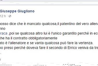 Un divorzio quasi annunciato, che oggi assume i contorni dell’ufficialità dopo il post di ieri sera del presidente Giuseppe Giugliano sulla sua pagina Facebook. “Santosuosso dice che è mancato qualcosa, il patentino del vero allenatore di quest’anno a Errico Braca“. Una bordata mica da ridere, che di fatto delegittima il lavoro svolto dal tecnico durante l’anno. Il presidente però non si ferma qui ma prosegue: “Io l’ho preso (Santosuosso, ndr) perché doveva fare il secondo di Errico Braca. Veniva da tre anni di oscurità”.