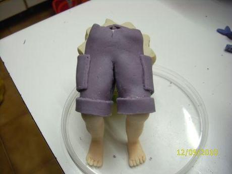 Dovendo realizzare un personaggio con i pantaloni, ho formato la parte superiore con un pezzo unico di pdz, dividendolo in due per realizzare le cosce e modellando il bacino che ritrae un personaggio seduto ci unisco le gambe fatte precedentemente con degli stuzzicadenti, rivesto di pdz per formare i pantaloni