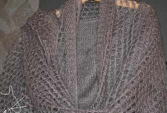 Considerato che avevo utilizzato per la maglietta nemmeno 50 gr di filato e ne avevo altri 75 da utilizzare, e vista la leggerezza del capo, ho pensato di confezionare una stola coordinata. Anche per questa ho preso spunto da un modello apparso su una rivista Rowan, Cherished, debitamente modificato.