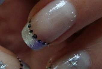 Con l'aiuto del dotter (potete usare anche una vecchia biro) tracciamo dei puntini con lo smalto nero per contornare la linea del french. Per dare maggiore brillantezza alla nostra nail art, passiamo uno strato di smalto trasparente glitterato.