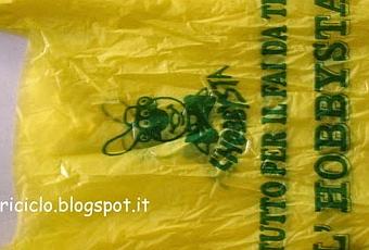 Partendo dal basso, risalendo verso l'alto, si tagliano delle striscie dello spessore di almeno un paio di cm.Nella foto in basso, ne ho iniziate alcune, ma il sacchetto va tagliato tutto.