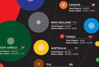Bella idea di Ruggerblogger, che prende le statistiche ufficiali IRB del numero dei giocatori di rugby in ognuno dei 20 paesi partecipanti al Mondiale in Nuova Zelanda e tira fuori questo…