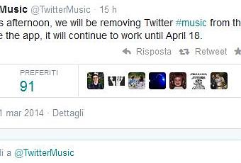 L’applicazione twitter #Music sarà rimossa dall’App Store il 18Aprile 2014, questo è quanto comunicato sul profilo twitter dell’applicazione.