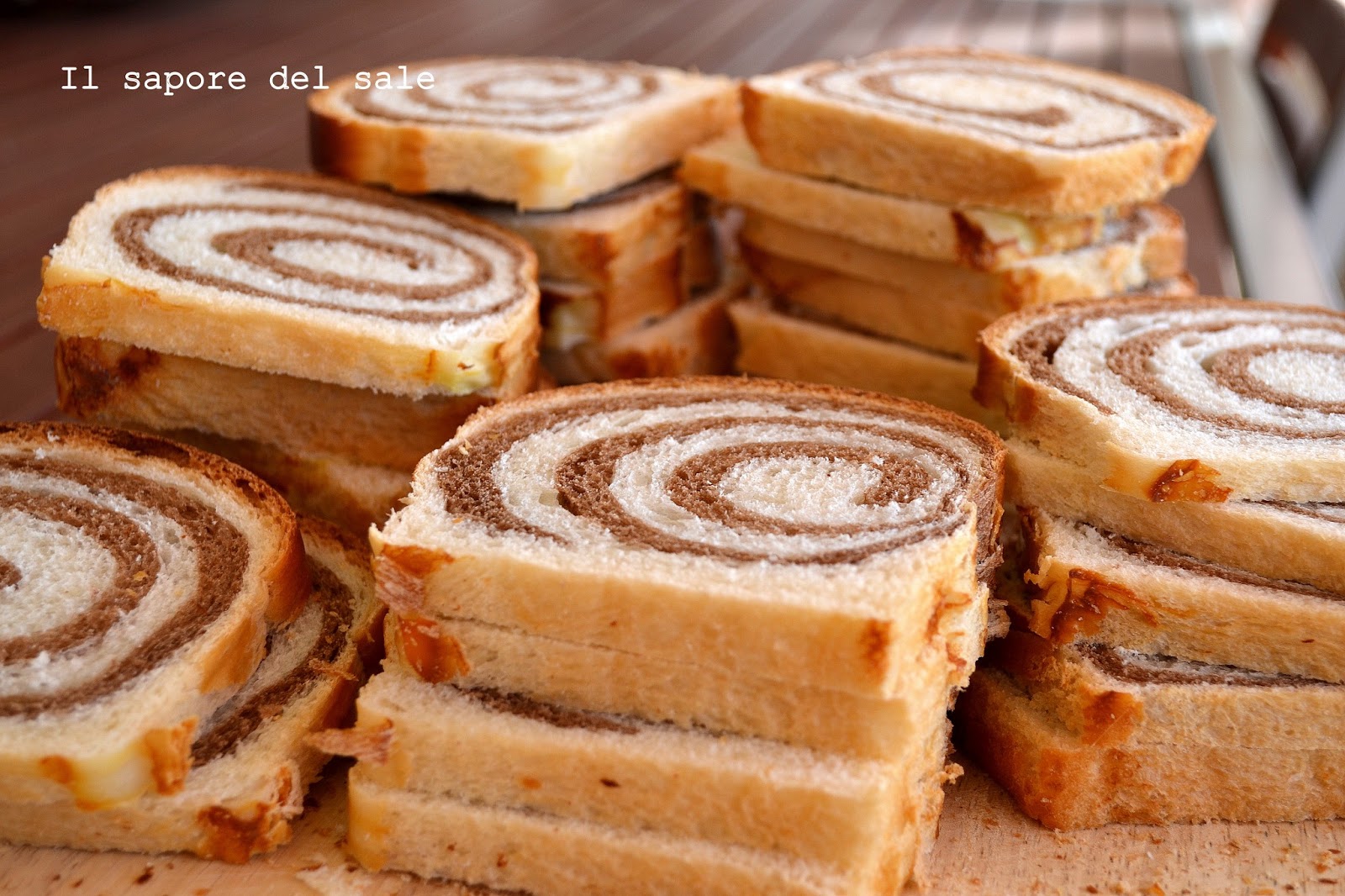 Oppure quando si parte per le vacanze, la mattina presto e qualcuno se ne esce con "ma si la colazione la facciamo in areoporto" e magari ci vuole un'ora e mezza di macchina per arrivarci all'areoporto...pfff, inconcepibile! Eh così capita che mi ritrovi a sgranocchiare in macchina dei biscotti buttati al volo nella borsa per mettere a tacere lo stomaco ed evitare il rischio di trasformarmi in una iena innervosita dalla fame!Cresciuta a caffè-latte e pan di stelle, purtroppo qualche anno fa ho dovuto cambiare le mie abitudini per problemi di intolleranze e quindi vario continuamente alla ricerca di Lei... la colazione perfetta!Per un po' è stato il periodo di yogurt e cereali, intervallato da qualche brioche (solo alla marmellata!), poi è arrivato il turno dei biscotti secchi e ora sono in mood fetta biscottata.Per questa ricetta non sono stata nemmeno a cercare, ma mi sono affidata subito al guru dei lievitati, prendendo qui la ricetta, apportando solo qualche leggererissima modifica per ottenere l'effetto bicolor!